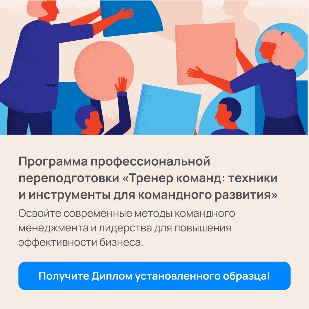 Если вы хотите глубже изучить подходы и инструменты командного менеджмента, приглашаем вас на программу профессиональной переподготовки "Тренер команд. Методология и практика командного менеджмента", которая стартует 30 января. На этой программе вы получите ценные практические знания, научитесь применять эффективные инструменты для управления командами и создадите прочную базу для системного развития своих команд.