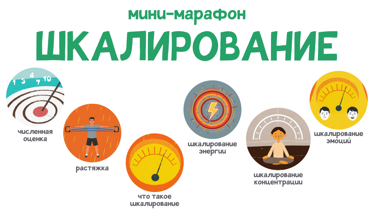 На марафоне мы будем разбираться в основных принципах шкалирования и тренироваться шкалировать (и управлять) разными вещами: эмоциями, уровнем адреналина, скоростью восприятия, концентрацией и так далее.
