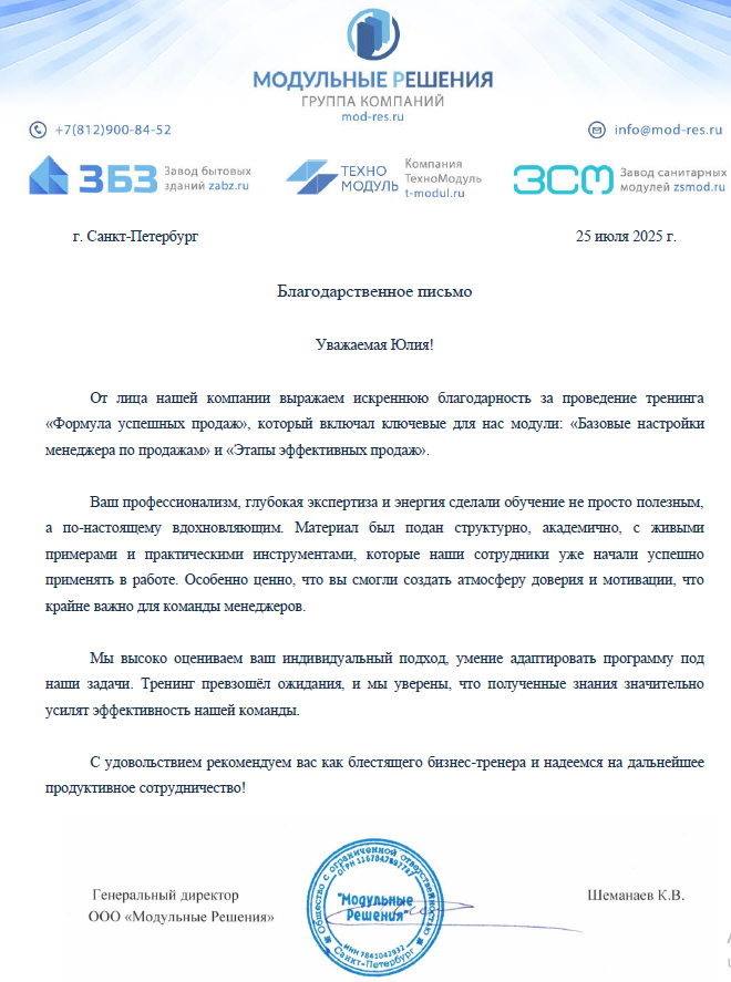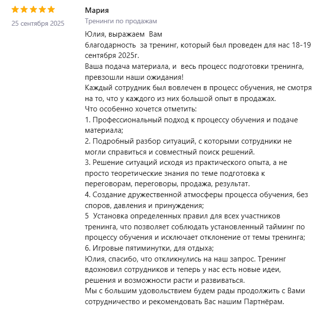 ✅ >20 - прошла курсов, семинаров, тренингов по развитию навыков продаж, управлению, коммуникациям, переговорам, тайм-менеджменту и прочим темам.