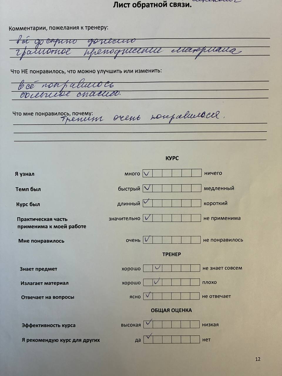 ✅ 12 лет - опыт по обучению, адаптации, повышение профессионального уровня сотрудников, разработка и внедрение системы грейдов, аттестаци и мотивации персонала.