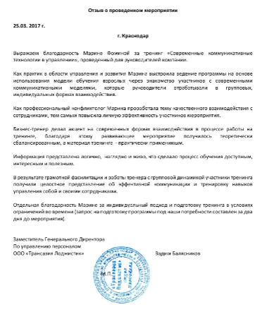 - Успешно провожу мероприятия разной продолжительности и формата с сохранением контакта с аудиторией и высокой вовлеченностью участников.