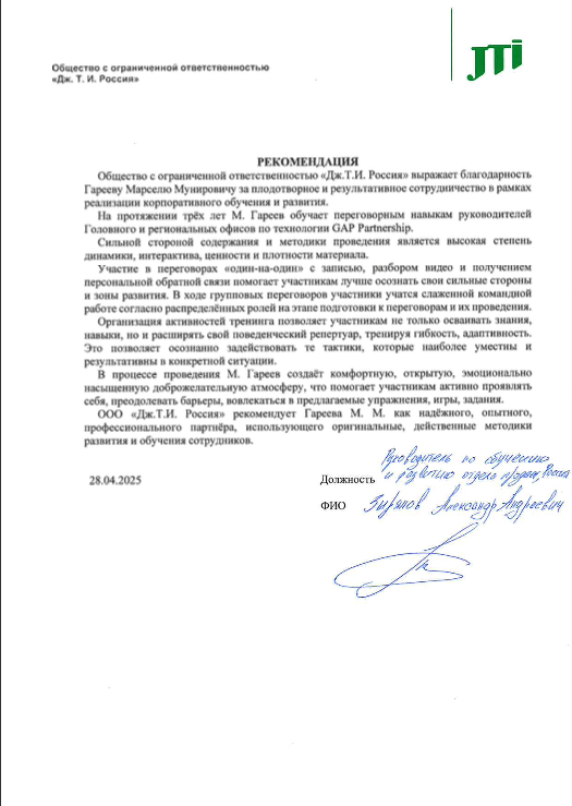 Подготовка по программе «Квалифицированный переговорщик», The Gap Partnership