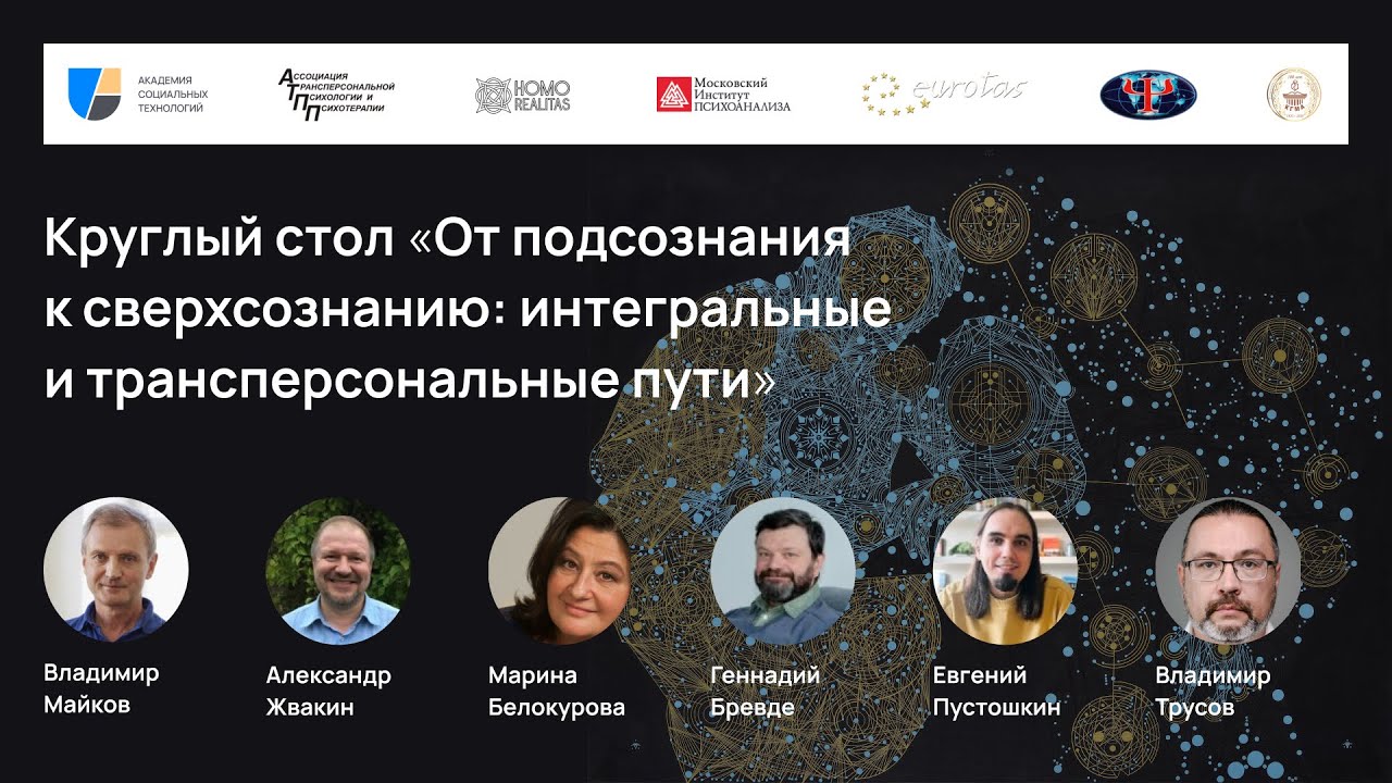 В рамках конференции состоялся круглый стол на тему "От подсознания к сверхсознанию: интегральные и трансперсональные пути". Ведущиими выступили Владимир Майков, член высшего экспертного совета кафедры "Трансперсональная психология" Академии социальных технологий и Евгений Пустошкин, член президиума Ассоциации трансперсональной психологии и психотерапии. Также в обсуждении темы приняли участие: Геннадий Бревде, Александр Жвакин, Владимир Трусов и Марина Белокурова. Запись круглого стола доступна для просмотра ниже: