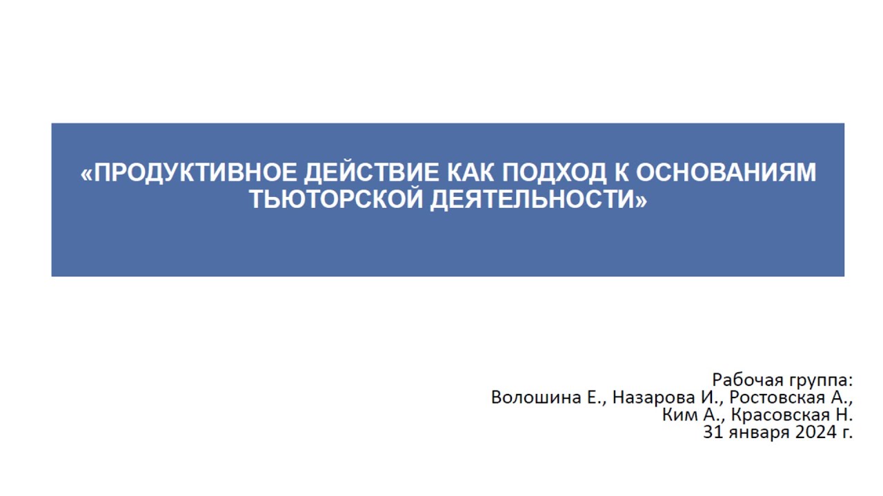 Доклад "Продуктивное действие как подход к основаниям тьюторской деятельности" и его обсуждение участниками кафедры "Тьюторство".