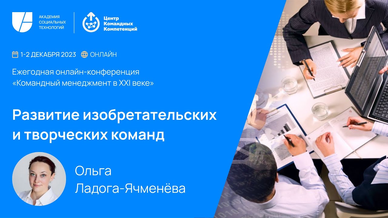 В рамках онлайн-конференции "Командный менеджмент в XXI веке" с докладом выступила Ольга Ладога-Ячменёва, заведующая кафедрой "Креативные методологии" и член Высшего экпертного совета кафедры "Технологии командного менеджмента" Академии социальных технологий.