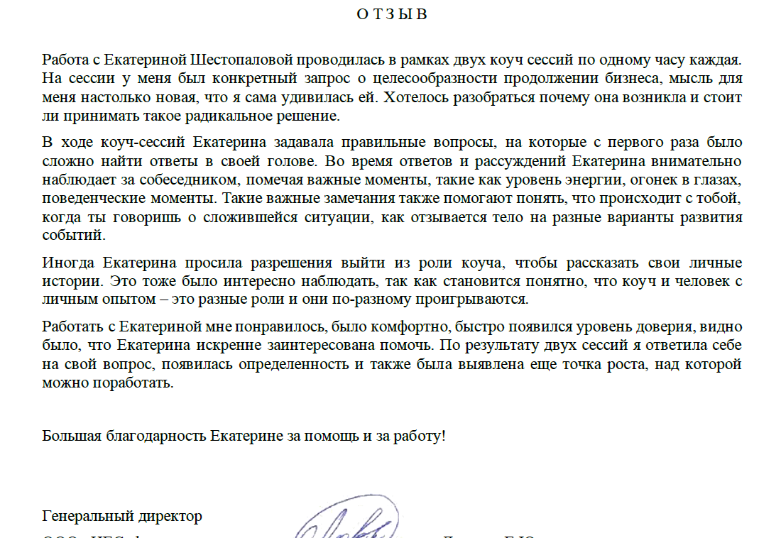 Для получения нужного результата за 1 сессию я соединила в одну технику мой личный опыт построения продающих команд, опыт кризисного менеджера, опыт управления филиалом финансовой компании + коучинговые инструменты + нейротехники + авторская методика по повышению личной энергии