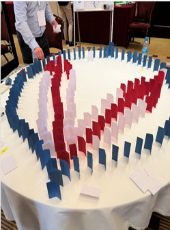 На столе перед участниками разворачивается большое игровое поле, которое представляет собой метафорический ландшафт с элементами, отражающими бизнес заказчика. Также на поле изображены возможные треки, по которым могут перемещаться участники.