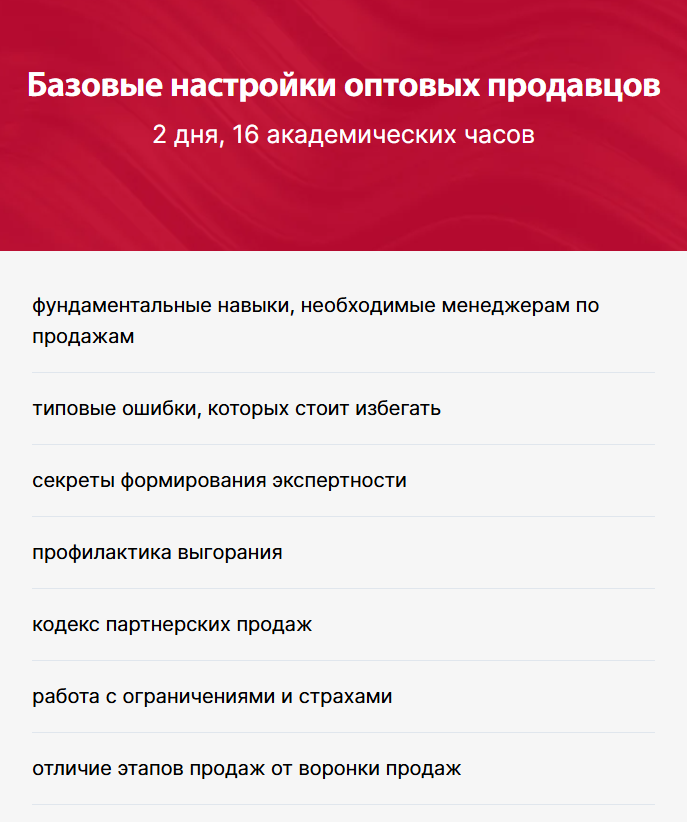 Развить навыки эффективной коммуникации и консультативных продаж.