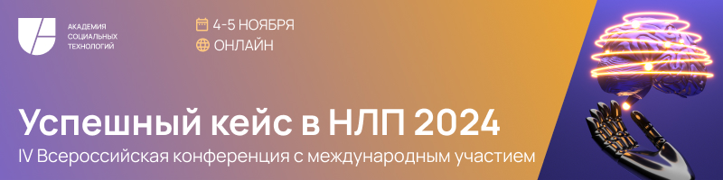 Для участия в IV Всероссийской конференции с международным участием "Успешный кейс в НЛП 2024" заполните форму регистрации.